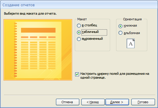 Теперь создадим отчет с помощью Мастера отчетов, который передоставляет гораздо больше возможностей и обеспечивает большую степень гибкости. В частности, вы можете определить способ группировки и сортировки данных, а также включить в отчет поля из нескольких таблиц или запросов.