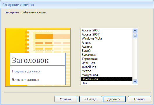 6. В следующем окне можно настроить стиль отображения отдельных элементов отчета (рис. 27), затем щелкните на кнопке Далее.