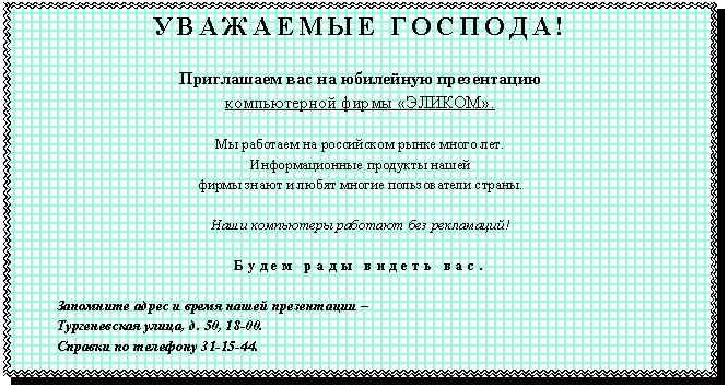 2. Оформите в тексте обращение "Уважаемые господа" полужирным шрифтом размером 16 пт вразрядку на 6 пт(шрифт-интервал-разреженный), отцентрируйте абзац и замените строчные буквы на прописные (команда Главная —› Регистр).