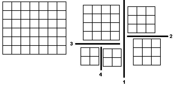 Васе часто приходится использовать тетради «в клетку». Вася положительно относится к клетчатой бумаге, но только если такая бумага имеет строго квадратную форму. В противном случае, прежде чем использовать бумагу, он разрезает её на квадратные куски. Пусть, например, лист имеет размер 6 на 7 квадратов, тогда Вася может разделить его на квадратные куски, выполнив 4 разреза: