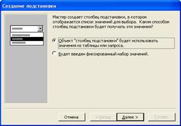 - Объект "столбец подстановки" будет использовать значения из таблицы или запроса