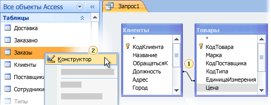 2. Переход аймағына тышқанның оң жағымен кестені екі рет шерту. Конструкторкомандасын таңдау.
