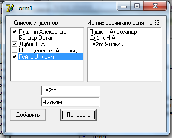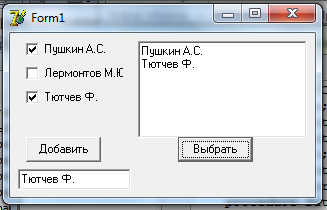 3. Ввод данных в список: CheckBox, вывод в ListBox.