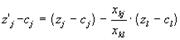 Если есть столбцы, где , то выбирается столбец с максимальным значением этой разности. Индекс j определит вектор, вводимый в базис.