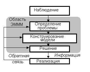 С точки зрения ЭМММ центральным моментом становится конструирование модели - абстрактного представления существующей проблемной ситуации. Обычно такая модель представляется в виде математического соотношения или графика.