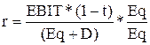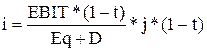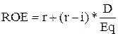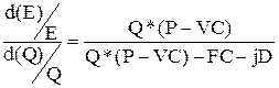 Предыдущие уравнения показывают, как зависит мобильность корпорации от структуры капитала (доли постоянных затрат, доли заемных средств). Зависимость эффективности функционирования от структуры капитала корпорации, в частности от доли заемных средств, может быть рассчитано следующим образом: