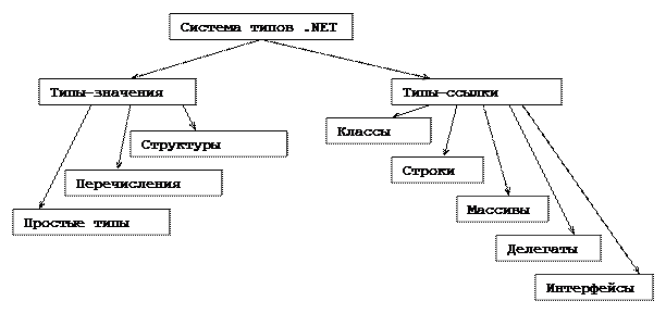 Система типов поддерживает две категории типов, каждая из которых разделена на подкатегории: типы значений (типы-значения) и ссылочные типы (типы-ссылки).