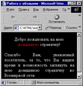Для выделения абзацев в тексте HTML-документа используется парный тег <p></p>. С помощью параметра align можно выравнивать текст: