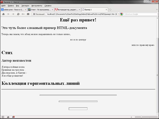Откройте папку со своим именем и дважды щелкните по файлу Пример1.html.