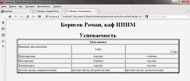 1. В заголовок документа Таблица.html введите свою фамилию, имя, номер группы, выровняйте заголовок по центру.