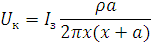 Визначить крокову напругу змінного струму на відстані 2м від джерела короткого замкнення на землю та оцініть струм через людину, якщо опір тіла, людини 1000 Ом, взуття - 20 Ом, питома провідність ґрунту – 30 Ом∙м, напруга джерела - 220В.