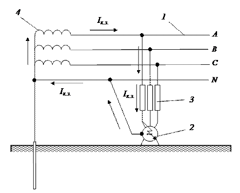 2- електроприлад; 3 – запобіжники; 4 – трансформатор розподільчої підстанції.