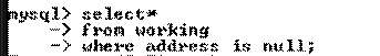 В связи с тем, что в соответствии со структурой таблицы рабочие (working) все поля имеют значение NOT NULL, то результатом выполнения запроса будет Empty Set.