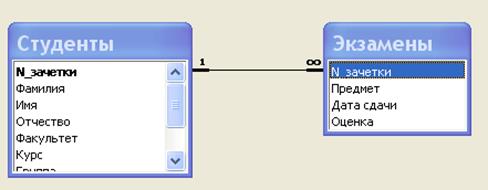В таблице со стороны «один» ( в нашем примере Студенты) поле Номер зачетки будет ключевым.