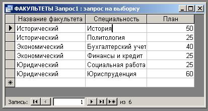 .выбрать. Факультет (таблица). Название факультета, Специальности (таблица), СПЕЦИАЛЬНОСТЬ. ПЛАН сортировать Факультеты. Факультеты по возрастанию, Специальности. СПЕЦИАЛЬНОСТЬ по возрастанию
