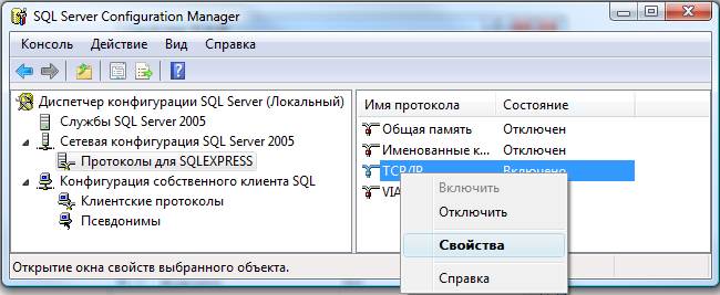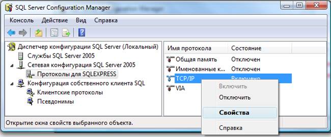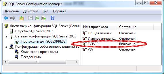 Необходимо настроить протоколы для SQLEXPRESS. Ключевым моментом является включение TCP/IP протокола.