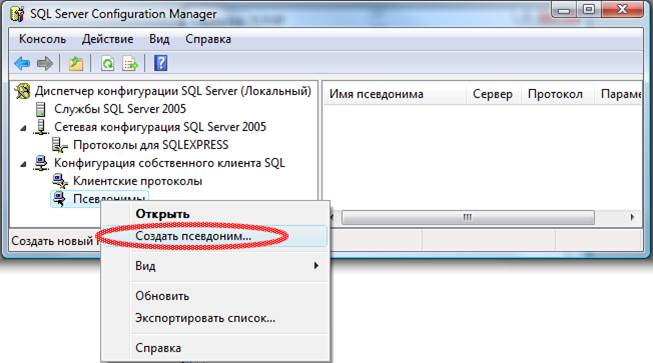 Далее необходимо задать имя псевдонима. Для этого выберите в контекстном меню команду «Создать псевдоним…».