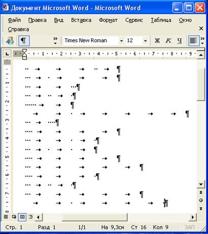 Рисунок 1. Непечатаемые символы