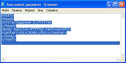 4. Разместить полученные данные на четырех HTML-страницах в соответствии с заданным ключом, например, 143243 (рисунок 9). Они располагаются после закрывающего тега </html>, причем вместо единиц записываются пробелы, а вместо нулей – символы табуляции. Удобно сначала ввести данные в документ MS Word, где можно увидеть вводимые символы, используя режим “Непечатаемые знаки” (кнопка “Непечатаемые знаки” находится на Стандартной панели), а уже потом скопировать полученную последовательность символов в Блокнот.