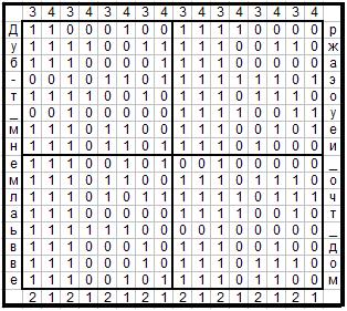 На рисунке 17 показан пример использования матрицы 16х16. В матрицу построчно записан афоризм Василия Аксенова «Дружба – это умение молчать вдвоем».