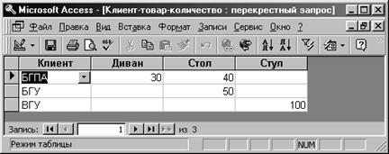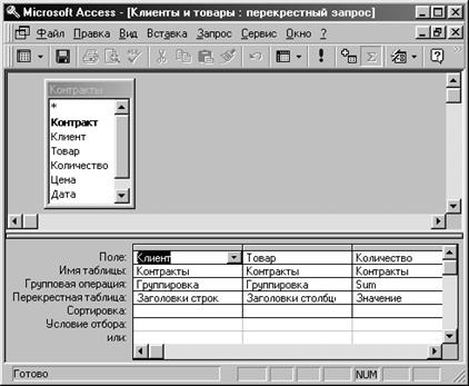 Рис. 23. Окно создания перекрестного запроса