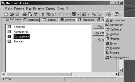 Самый быстрый способ подготовки формы может быть реализован в режиме просмотра таблицы или запроса щелчком мышью по соответствующей пиктограмме Новый объект (см. рис. 31), где можно выбрать команду Автоформа, когда мастер создает стандартную форму, содержащую все поля активной таблицы в столбец, за одну операцию, либо команду Форма, когда раскрывается диалоговое окно создания Новой формы (см. рис. 30).