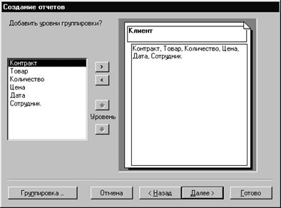 Рис. 39. Диалоговое окно для создания отчета с группировкой
