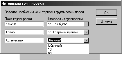 Рис. 40. Выбор интервалов группировки для полей с группировкой