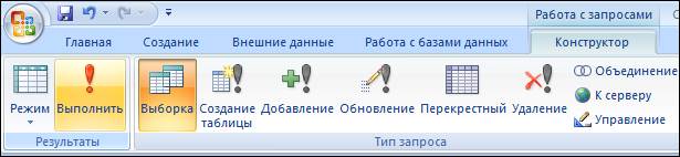 Выполнение запроса происходит по команде «Выполнить» запрос в режиме «Выборка» (рис. 7).
