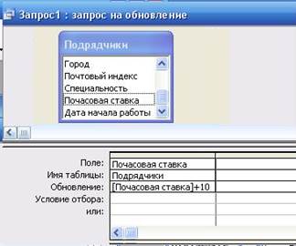 Чтобы увеличить (изменить) почасовую ставку подрядчиков на 10 единиц, достаточно прибавить к почасовой ставке 10 единиц. Введите в ячейку Update To (Обновление) формулу [Почасовая ставка]+10. (рисунок слева)