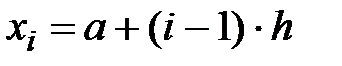где - подынтегральное выражение; xi – значение аргумента, которое рассчитывается по формуле (на рисунке аргументы имеют следующие значения , , , ); – шаг, равный отношению длины отрезка (b – a), на котором производится интегрирование к числу разбиений n.