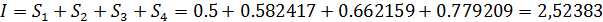 Приближенно, площадь под отрезком рассматриваемой функции равна сумме площадей прямоугольников S1 – S4. Из рисунка 2 видно, что чем меньше шаг, с которым строятся прямоугольники, тем точнее вычисления.