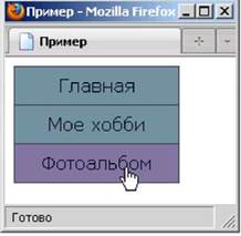 9) С помощью таблицы реализуйте меню, как показано на рис. 12. Используя псевдокласс hover для строки таблицы, добавьте выделение пункта меню цветом при наведении курсора.