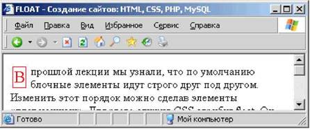 10) Используя плавающий блок, создайте буквицу, смещенную на одну строку вниз, как показано на рис. 13.