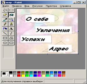 Рисунок модифікуйте за допомогою графічного редактора, наприклад, створіть текстові написи на ньому. Розташуйте елементи для гіперпосиланнь та уточніть координати гарячих областей.