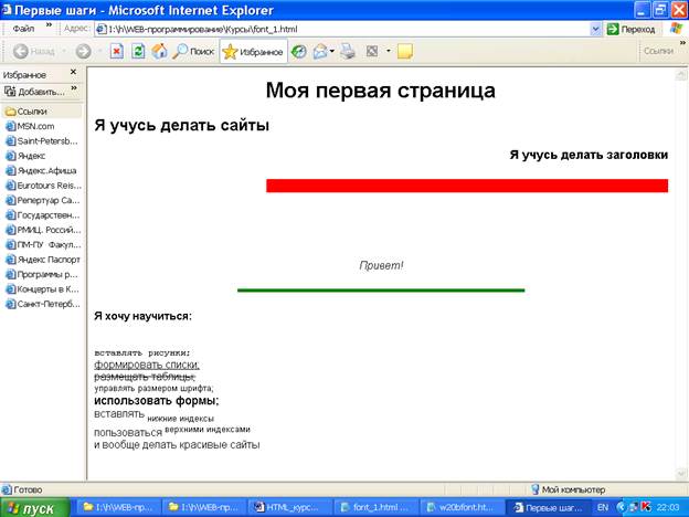 <p align="left">Привет! <br> Мне <small>нравится</small> учиться <big>программировать</big>.