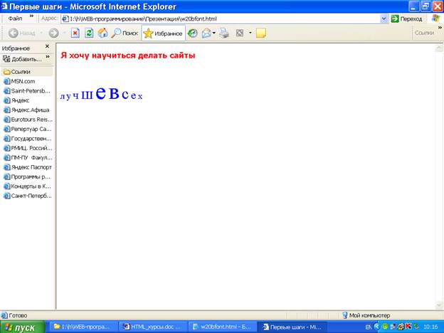 Я <font size=+4>много </font>занимаюсь и скоро буду сам делать сайты.</p>