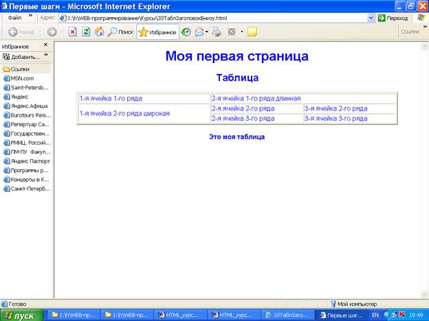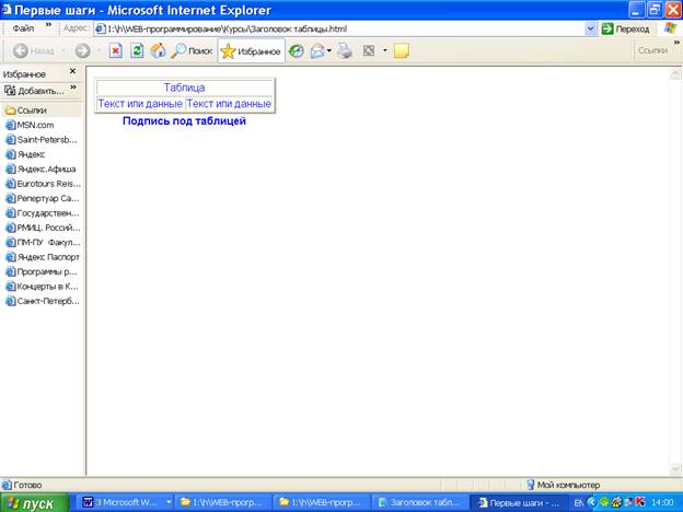 На экране текст, заключенный между тегами заголовка таблицы, выравнивается по центру и размещается вне таблицы сверху или снизу нее. Дескриптор помещается внутри тега <table>, но снаружи описания какой-либо строки или ячейки и имеет атрибут align, который принимает значения:
