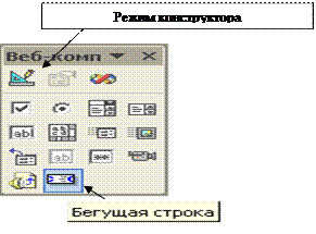 Также на страницу можно добавить бегущую строку, которая находится на панели инструментов Веб-компоненты. В режиме конструктора можно форматировать ее текст.