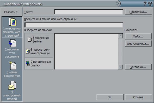 Примечание:Если адрес существующей Web-страницы известен, можно непосредственно ввести его в документ. Например, введите www.microsoft.com, и Word создаст соответствующую гиперссылку.