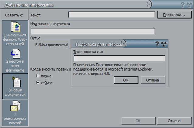 Рисунок 5 - Вставка гиперссылки на новый документ