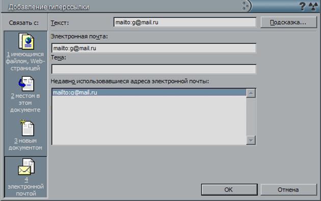 Рисунок 6 – Вставка гиперссылки на адрес электронной почты