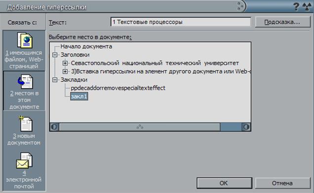 Рисунок 8 – Вставка гиперссылки на элемент текущего документа