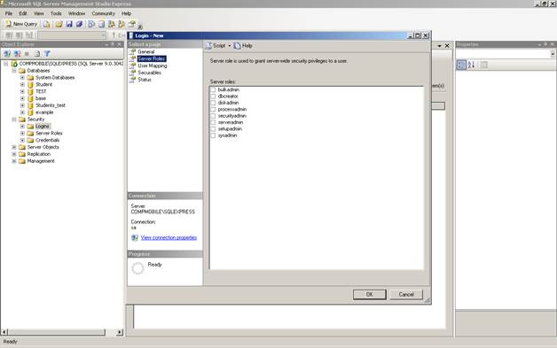 Рис. 6. Диалоговое окно для создания нового пользователя. Вкладка Server Roles.