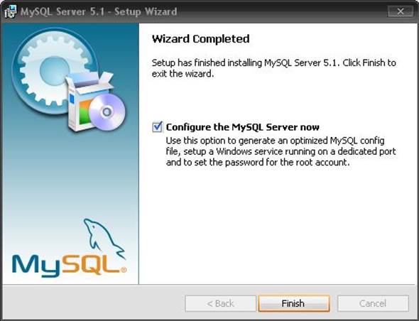 Далее следуем инструкциям инсталлятора, выбираем пункт Configure the MeSQL Server now, для более детальной настройки сервера.