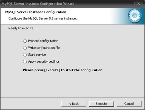 В данном окне обратите внимание на строку “Write configuration file”, которая указывает на месторасположение конфигурационного файла MySQL – my.ini.