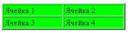 Пример 1.Построить таблицу из двух строк и столбцов с фиксированной шириной 250 пикселей, шириной боковой рамки 2 пикселя и ячейками светло-зеленого цвета.
