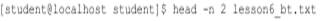 head filename1 [filename2 …] – үнсіздік бойынша файлдың 10 алғашқы жолдарын шығарады. Head командасына параметрлер беруге болады, төменде солардың ең көп қолданылатыны келтірілген: