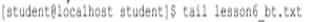 tail filename – үнсіздік бойынша файлдың соңғы 10 жолын шығарады. Төменде оның ең көп қолданылатын параметрлері келтірілген: