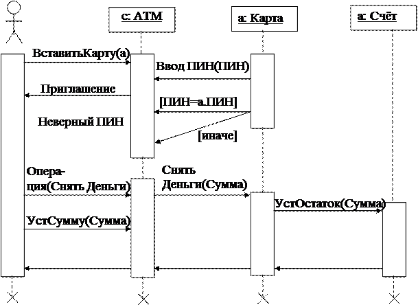 Рисунок 3 – Пример диаграммы последовательностей для системы «Банкомат»